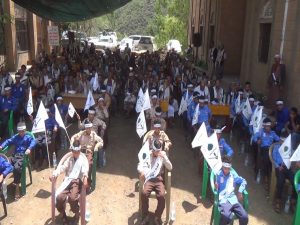 ومن جانبه هنأ مسؤول انصار الله بالعدين حسين الهاروني ، كافة الطلاب المشاركين تخرجهم من هذه الدورات الصيفية التي عرفتهم الكثير من المهارات والأساليب التوعوية والتثقيفية التي تحصنهم من الثقافات المغلوطة .. مؤكدا ان حملات التشوية التي شنها الأعداء على هذه المراكز مصدرها اليهود والنصارى الذين تشكل لهم هذه المراكز كابوسا مروعا يعمل على انشاء جيل متسلح بالإيمان والوعي وثقافة القرآن ..