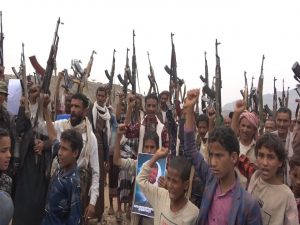 إب : وقفة قبلية لأبناء روينة بفرع العدين للتعبئة العامة والصمود في وجه العدوان ..