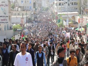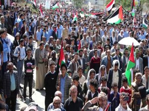 شاهد بالصور : مسيرة جماهيرية حاشدة في مدينة إب دعما لخيار حركات المقاومة وصمود الشعب الفلسطيني ..