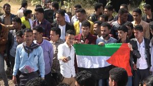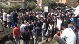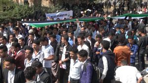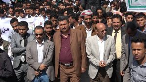 احتشد اليوم المئات من طلاب جامعة إب تقدمهم رئيس الجامعة الدكتور طارق المنصوب ونائبه الدكتور احمد ابولحوم تنديدا ورفضا لصفقة ترامب وتضامنا مع الشعب الفلسطيني وحقه في تحرير كامل ارضه وعاصمتها القدس الشريف .