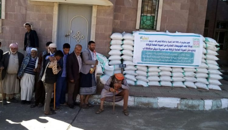 قام فرع الهيئة العامة للزكاة بمحافظة إب ومكاتبه في مديريات الظهار والمشنة وبعدان وحبيش بتوزيع الزكاة النقدية والعينية على مستحقيها وفق المصارف المعلومة .