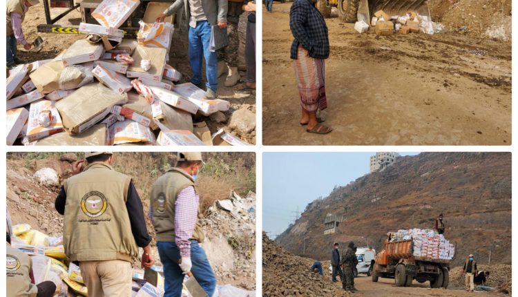 المواصفات والمقاييس بإب تتلف أطنان من المواد الغذائية منتهية الصلاحية .
