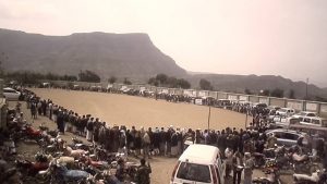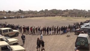 أقيمت في مدينة رحاب مركز مديرية القفر وقفة قبلية حاشد إحياءً للذكرى السنوية لاستشهاد الشهيد القائد حسين بدر الدين الحوثي رضوان الله عليه والذكرى الخامسة لليوم الوطني للصمود في وجه العدوان .