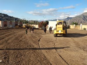 و أثناء زيارته استمع من المهندسين القائمين على عملية اعداد ساحة المبنى من قبل مكتب الأشغال أفادوا أنه قد تم إزالة المواد الطينية و الأشجار من الموقع كامل