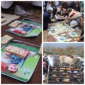 سيرت قبيلة آل الشبيبي وأسرة الشهيد بشار الشبيبي بمديرية حبيش محافظة إب قافلة مالية وعينية احتوت على مواد غذائية ورؤوس من الاغنام والماشية رفدا للجبهات في ميادين العزة والشرف حملت إسم ( فأمكن منهم ) .