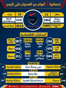 انوجرافيك..”المنشئات الاقتصادية “إحصائية 5 أعوام من العدوان على اليمن On مارس 25, 2020 Share Share FacebookTwitterGoogle+ReddItWhatsAppPinterestEmail