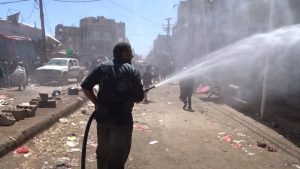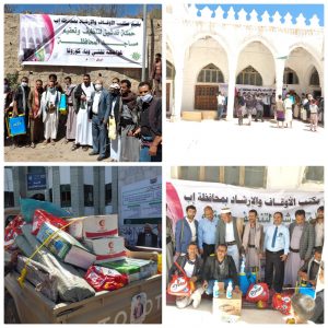 وفي سياق متصل وضمن الجهود الرسمية لمواجهة وباء كورونا نُفذت في مديرية يريم بمحافظة إب حملة رش وتعقيم للشوارع والأسواق والأماكن العامة بمركز المديرية بحضور مدير عام المديرية محمد الشامي .