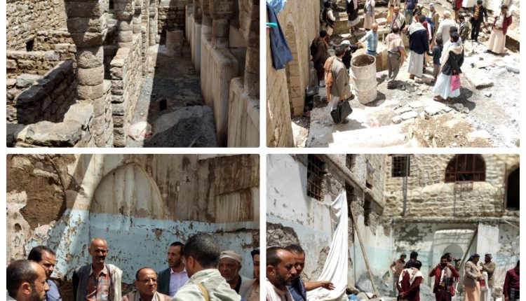 غلاب يتفقد سير أعمال الترميم والصيانة في الجامع الكبير بمدينة إب القديمة .