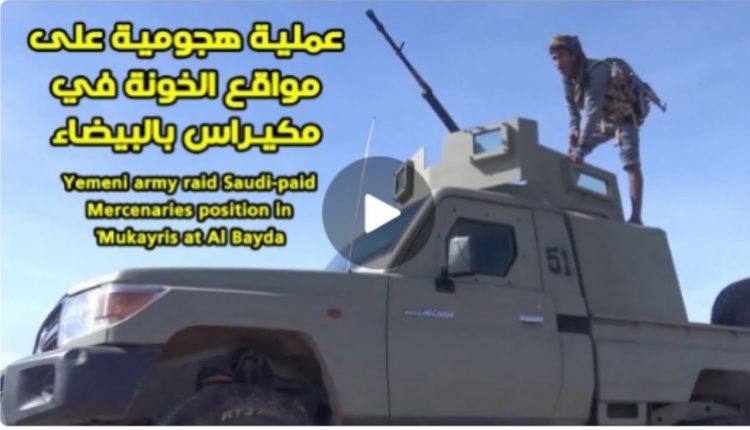 شاهد بالفيديو .. عملية هجومية على مواقع الخونة في مكيراس بـالبيضاء On مايو 4, 2020 Share شاهد .. عملية هجومية على مواقع الخونة في مكيراس بـالبيضاء Share FacebookTwitterGoogle+ReddItWhatsAppPinterestEmail