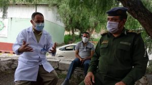 زار عدد من القيادات الأمنية بإب يتقدمهم مساعد مدير أمن المحافظة العقيد أمين وجيه الدين مركز العزل الصحي في مستشفى جبلة العام وكان في استقبالهم الدكتور عبدالله المطري رئيس جامعة جبلة للعلوم الصحية مدير عام المستشفى الذي أطلع الزوار على الإستعدادات والتجهيزات والترتيبات لمكافحة هذا الوباء وتقديم الرعاية الطبية المناسبة للحالات التي قد يصيبها هذا الوباء الخطير .