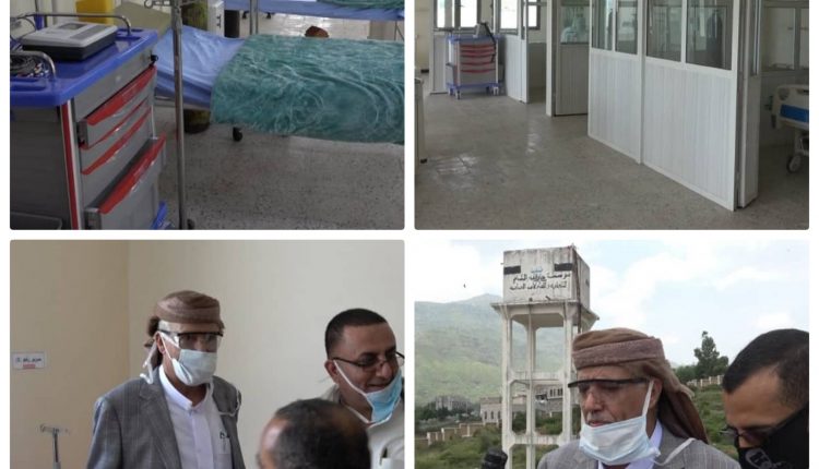 اطلع محافظ محافظة إب عبدالواحد محمد صلاح على التجهيزات النهائية لافتتاح مركز العزل الصحي بمنطقة السحول محافظة إب والذي يضم ١٨٩ كادرا طبيا وإداريا ويحوي ما يزيد عن ١٣٥ سريرا منها (٣٠) سريرا عناية مشددة بالإضافة إلى محرقة للنفايات ومناطق عبور للكوادر والحالات المؤكد إصابتها بوباء كورونا .