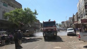 نفذت اليوم بمركز مديرية العدين في محافظة إب حملات نظافة وتعقيم واسعة لشوارع المدينة وتطبيق الحظر التجريبي في حارات السوق المركزي والعرض ابتداءً من الساعة السادسة صباحا وحتى السادسة مساءً .