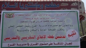 وبدوره أهاب مدير مكتب الصحة في فرع العدين عبدالمغني الحميري بالجميع التعاون والحرص على الأخذ بوسائل الحماية الإحترازية واجراءات التباعد الإجتماعي والنظافة وتأجيل المناسبات والزيارات لحماية انفسهم ومن يحبون من هذا الوباء الخطير .