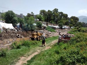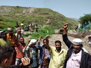 شاهد بالصور..أعمال تدعيم وحماية من السيول لمخيم أحفاد بلال جوار سائلة جبلة بإب .