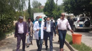 اطلع وكيل محافظة إب للشؤون الصحية والمنظمات الدكتور أشرف المتوكل ومعه مدير عام مكتب الصحة الدكتور عبدالله السماوي على سير العمل في مستشفى العدين بمركز مديرية العدين والمستشفى الريفي بمديرية مذيخرة .