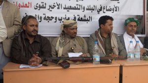 فيما ألقيت كلمات باسم وجهاء ومشائخ الحيمة ألقاها محمد علي عامر ومنصور الدميني وعبدالكريم عبدالجليل أشادت في مجملها بهذه البادرة الطيبة والزيارة الكريمة لهذه المنطقة التي عانت ولأعوام طويلة من أحداث وإشكالات متعددة . مؤكدين ثبات موقفهم الراسخ ضد العدوان الذي يرتكب المجازر بحق أبناء هذا الشعب ويدمر مقوماته وينهب ثرواته . معلنين التعبئة العامة والتحشيد إلى جبهات القتال . داعين إلى اعتبار من سقطوا في سوق الحيمة جراء قصف طائرات العدوان أثناء الأحداث من شهداء الوطن وتسمية السوق بسوق الشهداء .