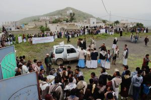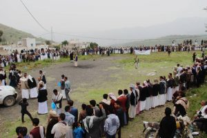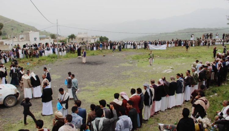 شاهد بالصور .. أبناء أنامر أعلى بإب ينددون بجرائم العدوان في الجوف وحجة ومأرب .