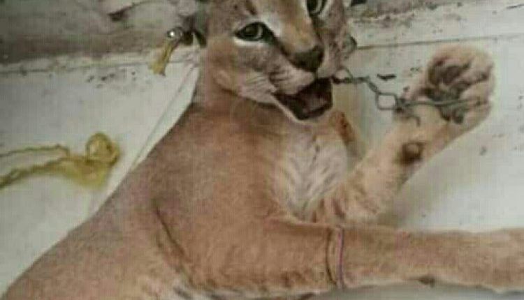 قالت مصادر محلية ان مواطنون تمكنوا من القبض على حيوان بري من الحيوانات المفترسة شبيه بالنمر وجدوه في جبال كور العوالق في شبوه.