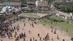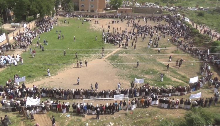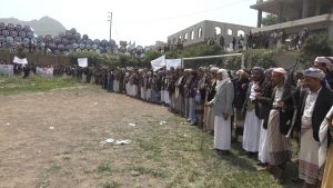 شاهد بالصور .. لقاء جماهيري حاشد في مديرية العدين بإب تنديدا بجرائم العدوان وتحشيد للجبهات .