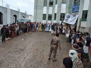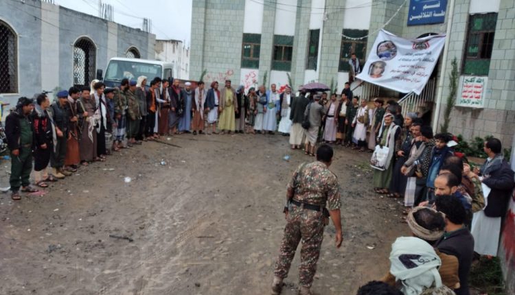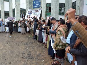 وقفة احتجاجية لموظفي مكتب الأوقاف بإب تنديدا بجرائم العدوان البشعة .