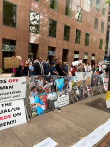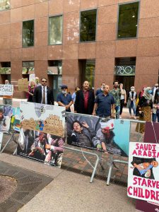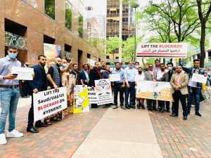 نددت فعالية احتجاجية ومسيرة راجلة إلى أمام مقر القنصلية السعودية في نيويورك باستمرار العدوان السعودي الأمريكي على اليمن تزامنا مع الذكرى السنوية لمجزرة العدوان بحق أطفال ضحيان بصعدة.