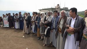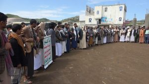 شاهد بالصور .. وقفة في بني محرم بريف إب تدين التطبيع الإماراتي مع الكيان الصهيوني .