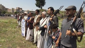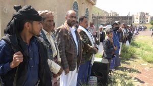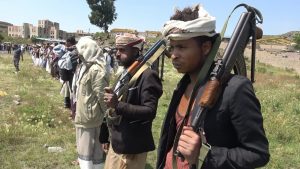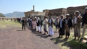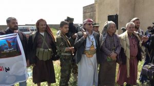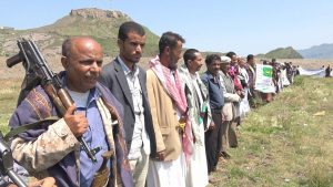 شاهد بالصور .. وقفة قبلية مسلحة في بعدان بإب تنديدا بالتطبيع الإماراتي مع اليهود .