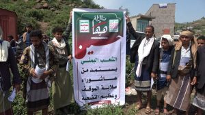 حضر الوقفة أمين عام المجلس المحلي بريف إب مصطفى آل قاسم ومسؤول أنصار الله في المربع الغربي بريف إب على الهتار وعضو المجلس المحلي بالمديرية أحمد سالم صلاح .