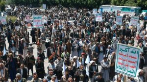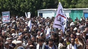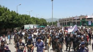 وبعد الإنتهاء من الكلمات خرج المشاركون في مسيرة احتجاجية رفضا وتنديدا بالتطبيع ، مرددين هتافات حماسية ضد الصهاينة والأمريكان ومن تحالف معهم من دول العرب والمسلمين ..