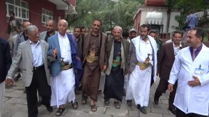 رافقهم خلال الزيارات وكيل المحافظة عبدالرحمن الزكري وعميد كلية الطب الدكتور بهيج المريسي ومدير عام مكتب الإعلام عبدالباسط النوعة .