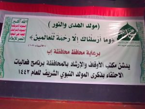 دشن مكتب اﻷوقاف واﻹرشاد بمحافظة إب اليوم برنامج الفعاليات اﻹحتفائية بذكرى المولد النبوي الشريف على صاحبها أفضل الصلاة وأتم التسليم .
