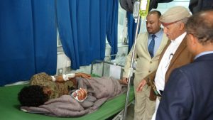 مقبولي يزور جرحى الجيش واللجان ويطلع على سير العمل في مستشفى الثورة بإب .