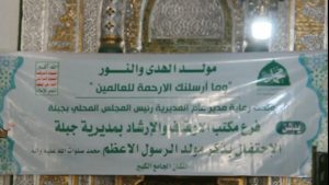 وفي مدينة جبلة أقيمت اليوم فعالية خطابية إحياء لذكرى المولد النبوي الشريف بحضور مدير عام مديرية جبلة محمد المريسي ومسؤول أنصار الله سلطان الشاجع . حيث شددت كلمات الفعالية على أهمية الإحتفاء بهذه المناسبة لإحياء السيرة والسلوك والصفات المحمدية في نفوس أبناء الأمة. موضحين أن إحياء هذه الصفات والأخلاقيات المحمدية لتنير للأمة الدروب المضلمة ، مشيرين إلى أن الرسول أعظم قائد وبالعودة إليه والإقتداء به حتما ستعود هذه الأمة المسلمة إلى سيادتها بين الأمم .
