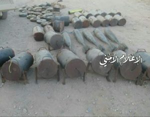 شاهد بالصور : شرطة البيضاء تعثر على 27 عبوة ناسفة .