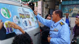 دشن وكيل محافظة إب لشؤون النقل والسياحة حارث المليكي اليوم حملة أمنية لضبط السيارات المخالفة لقواعد وإرشادات المرور ونزع العاكس من سيارات النقل العامة والخاصة في مركز المحافظة .
