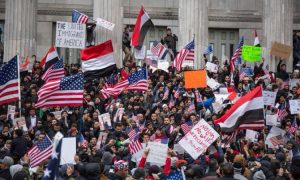 ونشر ناشطون صوراً لآلاف اليمنيين وقد احتشدوا بالقرب من البيت الأبيض رافعين إعلام أمريكا واليمن وشعارات تطالب بإنهاء الحرب وأُخرى بتغير سياسة التعامل مع الهجرة والمهاجرين.
