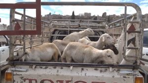 واحتوت القافلة على مواد غذائية وحبوب ورؤوس من الأغنام والماعز .