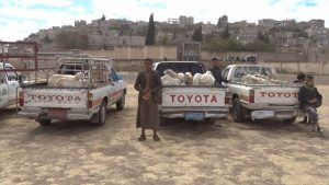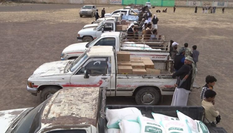 قافلة عينية من أبناء عراس بمحافظة إب دعما للمرابطين في الجبهات .