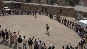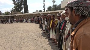 أقيمت في منطقة الجعاشن بمديرية ذي السفال محافظة إب وقفة قبلية تنديدا باستمرار جرائم العدوان واستهداف اسطبلات الخيول في الكلية الحربية بصنعاء .