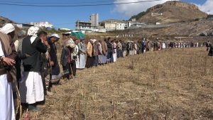 شاهد بالصور.. وقفة قبلية في بعدان بإب تحشيدا للجبهات وتنديدا باستمرار جرائم العدوان .