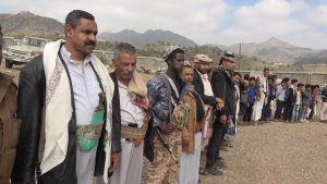 ،،، وفي مديرية السبرة أقيمت اليوم وقفة قبلية للتحشيد ورفد الجبهات ضمن حملة أشداء على الكفار .