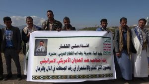 وخلال الوقفة بحضور وكيل المحافظة قاسم المساوى أكد المشاركون الإستمرار في الصمود والثبات ورفد الجبهات بقوافل العطاء من المال والرجال .