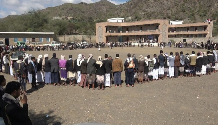 دشن أبناء عزلتي حبير والعداني بمديرية ذي السفال محافظة إب حملة ( أشداء على الكفار ) للتعبئة العامة والتحشيد الى الجبهات .