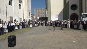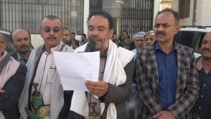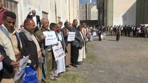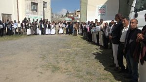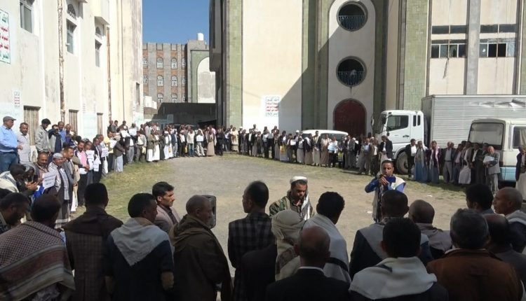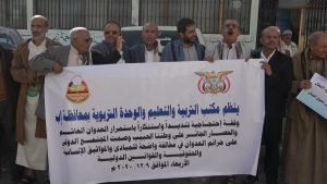 وقفة احتجاجية للعاملين في القطاع التربوي بإب تنديدا بجرائم العدوان .