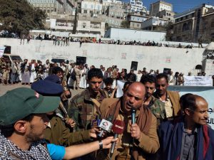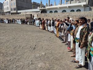 وأشاروا في بيان وقفتهم إلى أن الشعب اليمني يرفض اي تصنيف لإي طرف يمني ووصفها بالأرهاب الذي يعد صناعة أمريكية . منوهين أن هذا القرار يهدف إلى التغطية على جرائم أمريكيا وباليمن كونها مشاركة في العدوان عليه . مجددين العهد لقائد الثورة بالولاء والوفاء لدماء الشهداء والثبات على الموقف حتى يتحقق النصر ضد العدوان .