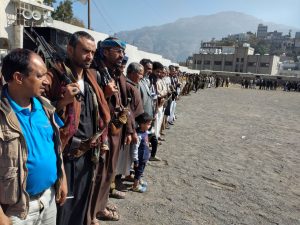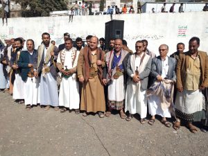 أقيمت اليوم في مديرية الظهار بمحافظة إب وقفة قبلية حاشدة تنديدا ورفضا لقرار إدارة ترامب تصنيف أنصار الله بحركة إرهابية .