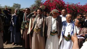 وقفة قبلية بالمخادر في إب تنديدا بقرار تصنيف الشعب اليمني بالإرهاب .