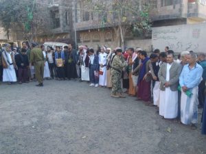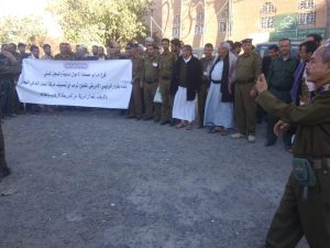 وخلال الوقفة اكد المشاركون إلتفافهم حول القيادة الثورية وتصديهم لكل محاولات قوى العدوان استهداف الشعب اليمني بقرارات جوفاء .