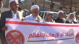 أكد أبناء مدينة جبلة بمحافظة إب أن قرار التصنيف الأمريكي لأنصار الله كحركة إرهابية يعد استكمالا لجرائم النظام الأمريكي بحق الشعب اليمني وامعانا في إطباق الحصار عليه واستهداف مقدرات البلد وثرواته ..