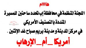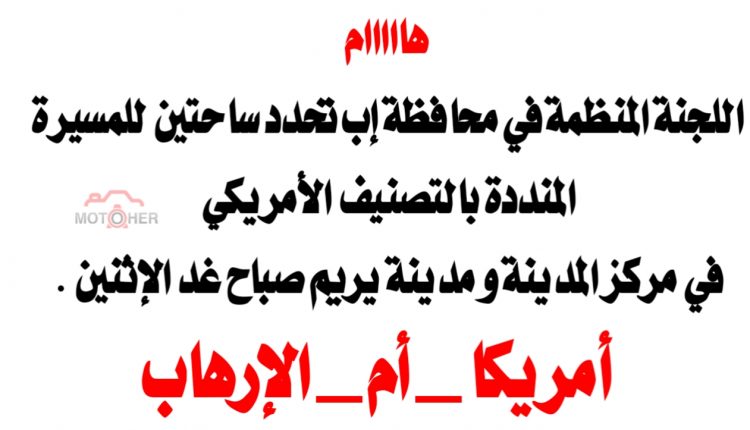 هااااام .. اللجنة المنظمة في محافظة إب تحدد ساحتين للمسيرة المنددة بالتصنيف الأمريكي في مركز المدينة ومدينة يريم صباح غد الإثنين . #امريكا_ام_الارهاب